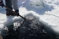 Несмотря на эти трудности и сомнения, мы провели айс и были обрадованы увиденным. Вода прозрачная, глубина до 10 метров, на дне огромные камни. Лед очень прозрачный, толщина льда 35-40 см.