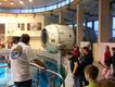 В субботу 9 февряля 2013 года мы побывали в гидролаборатории Звездного городка. Там космонавты тренируются перед выходом в открытый космос. Если правильно подобрать количество и размещение грузиков, то человек сможет находиться в гидроневесомости в любом пространственном положении. Гидролаборатория это круглый бассейн диаметром 23 метра и глубиной 12 метров. Он оснащен подъемной платформой, на которой устанавливаются макеты космических кораблей. Сейчас на платформе макет международной космической станции (МКС).